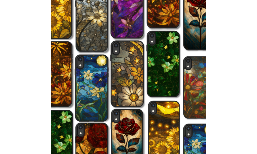 Θήκη για ( iPhone 16 Pro ) Stained Glass Flowers με 10 Σχέδια επιλογής (Κωδ: 1050)