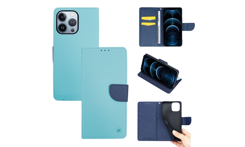 Θήκη Πορτοφόλι Sonique Trend Wallet Apple iPhone 13 Pro Max Σιέλ / Σκούρο Μπλε