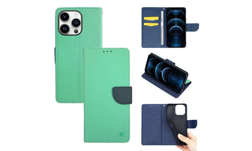 Θήκη Πορτοφόλι Sonique Trend Wallet Apple iPhone 14 Pro Βεραμάν / Σκούρο Μπλε