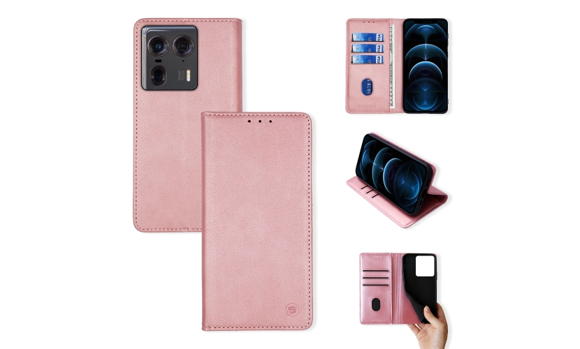 Θήκη Πορτοφόλι Vintage Magnet Wallet Sonique Motorola Edge 50 Ultra Ροζ Χρυσό