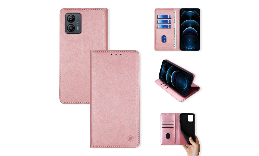 Θήκη Πορτοφόλι Vintage Magnet Wallet Sonique Motorola Moto G53 5G Ροζ Χρυσό