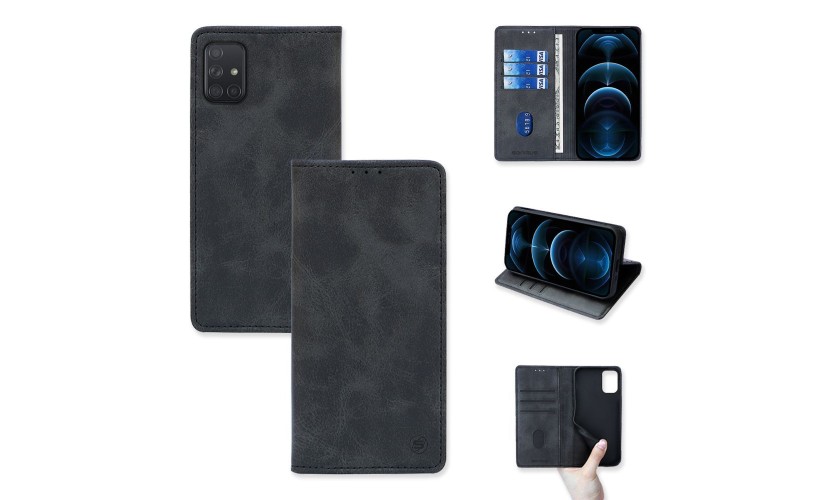 Θήκη Πορτοφόλι Vintage Magnet Wallet Sonique Samsung Galaxy A71 Μαύρο