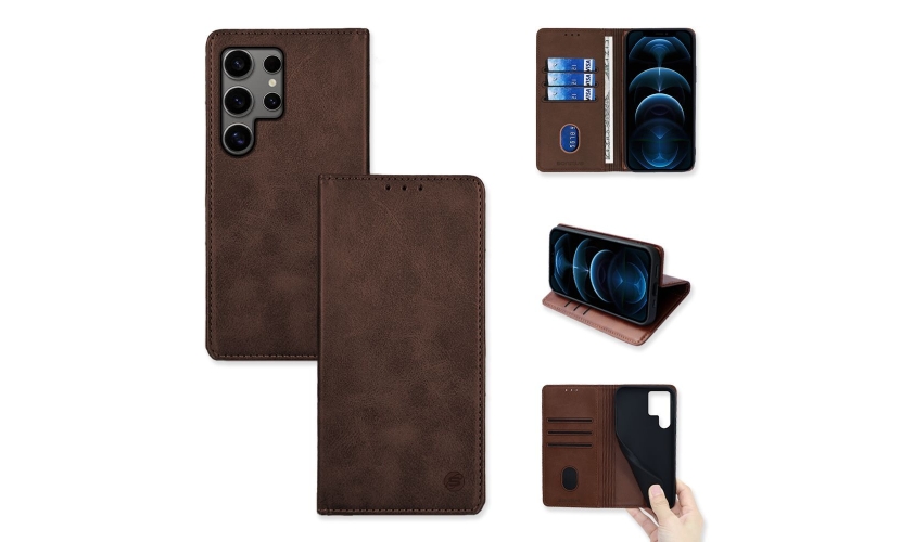 Θήκη Πορτοφόλι Vintage Magnet Wallet Sonique Samsung Galaxy S24 Ultra Καφέ