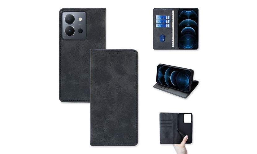 Θήκη Πορτοφόλι Vintage Magnet Wallet Sonique VIVO Y36 4G / VIVO Y36 5G / VIVO Y27 5G / VIVO Y27s Μαύρο