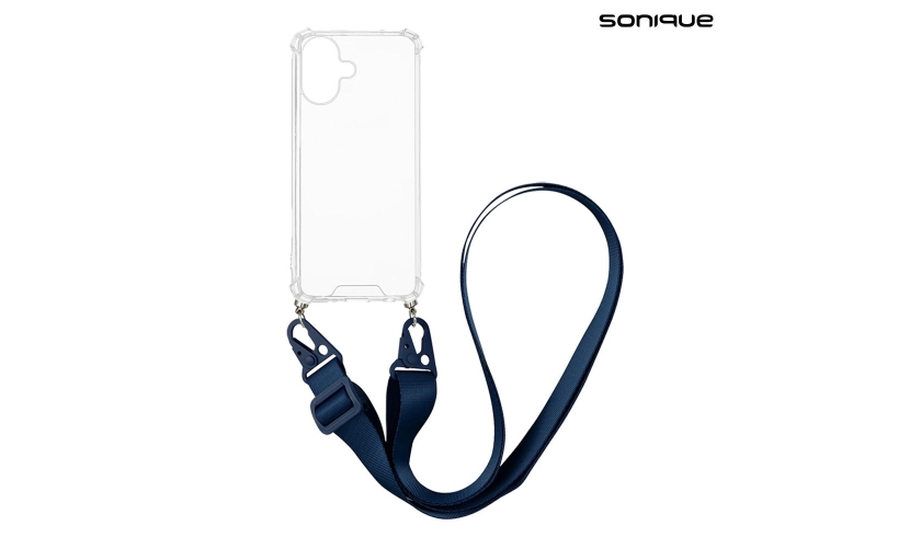 Θήκη Σιλικόνης με Strap Sonique Armor Clear Apple iPhone 16 Plus Μπλε Σκούρο