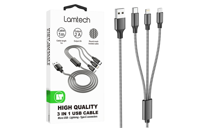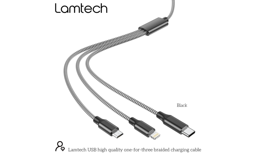 LAMTECH Καλώδιο 3 σε 1 USB Υψηλής Ποιότητας με Μεταλλικό Κέλυφος - Μαύρο 1m (LAM450305)
