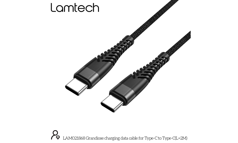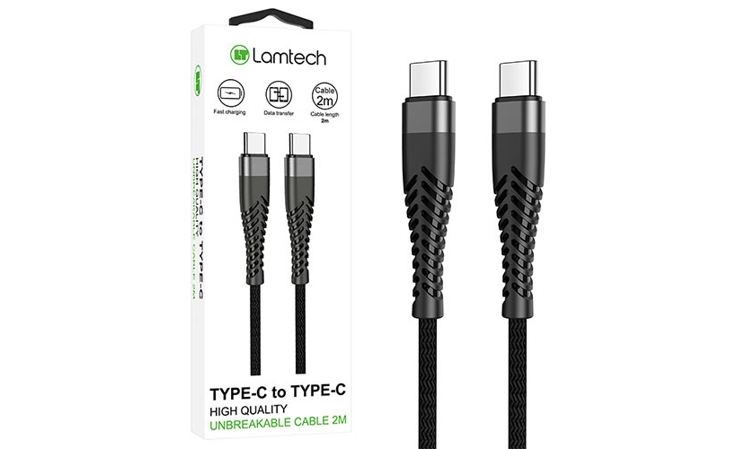 Καλώδιο LAMTECH HQ Unbreakable Type-C σε Type-C 2μ Μαύρο