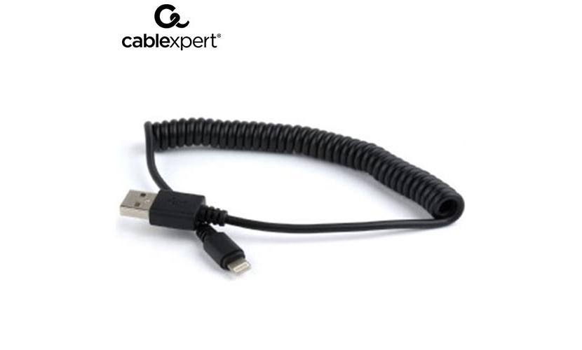 USB καλώδιο φόρτισης και συγχρονισμού για iPhone, σπιράλ, 1,5 m, μαύρο
