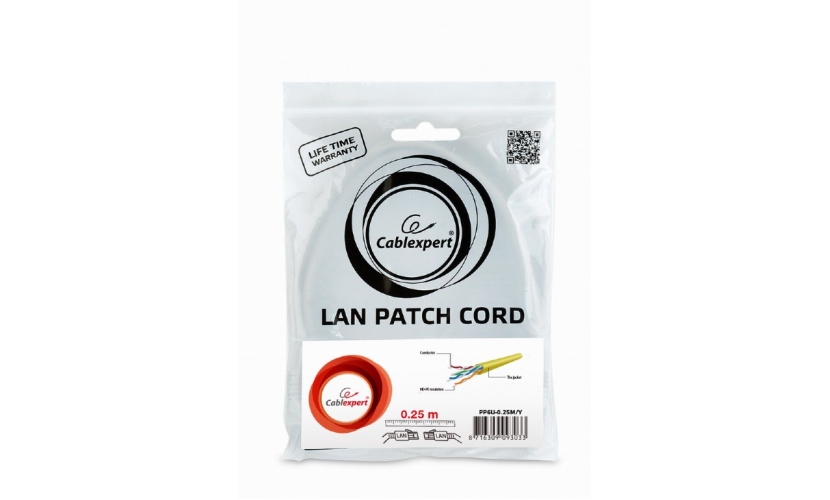 CABLEXPERT UTP CAT6 PATCH CORD 0,25M YELLOW