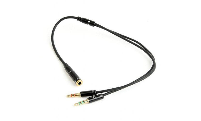 CABLEXPERT 3.5MM 4-PIN SOCKET TO 2x3.5MM STEREO PLUG ADAPTER CABLE BLACK METAL CONNECTORS