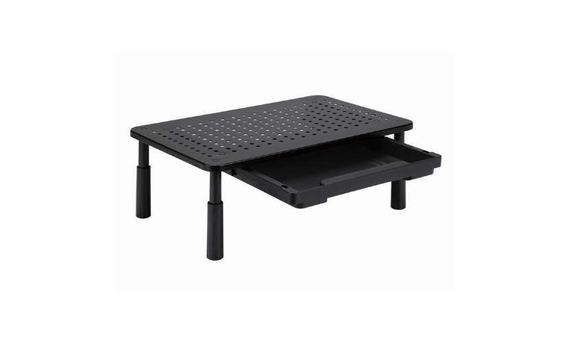 GEMBIRD Ρυθμιζόμενη Επιτραπέζια Βάση Οθόνης με Συρτάρι (Ορθογώνια) – Μαύρο Η GEMBIRD Adjustable Monitor Stand with Drawer είναι η ιδανική λύση για να τοποθετήσετε την οθόνη ή το laptop σας σε σωστό ύψος, μειώνοντας την καταπόνηση του λαιμού και των ματιών. Η πρακτική βάση με συρτάρι σας επιτρέπει να αποθηκεύετε στυλό, κάρτες μνήμης, σημειώσεις και άλλα μικρά αντικείμενα, διατηρώντας τον χώρο εργασίας σας τακτοποιημένο. Το κομψό, ορθογώνιο σχήμα της βάσης ταιριάζει σε κάθε γραφείο, ενώ οι τρεις ρυθμίσεις ύψους προσφέρουν την ιδανική εργονομική γωνία θέασης. Χαρακτηριστικά Ρυθμιζόμενη επιτραπέζια βάση από ατσάλι για οθόνη ή laptop Πρακτικό συρτάρι για αποθήκευση γραφικών και μικρών αντικειμένων Κομψό ορθογώνιο σχέδιο, κατάλληλο για κάθε γραφείο 3 ρυθμίσεις ύψους για βέλτιστη εργονομική θέση Η GEMBIRD Adjustable Monitor Stand with Drawer είναι η τέλεια επιλογή για όσους θέλουν να συνδυάσουν εργονομία, πρακτικότητα και κομψότητα στον χώρο εργασίας τους.