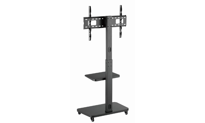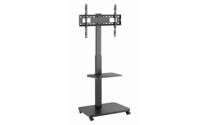 GEMBIRD Επιδαπέδια Βάση Τηλεόρασης με Ροδάκια – 37" έως 75" – VESA 600x400 – Μαύρο Η GEMBIRD TV Floor Stand with Caster Wheels σας επιτρέπει να μετακινείτε εύκολα την τηλεόρασή σας σε οποιονδήποτε χώρο, καθιστώντας την ιδανική για γραφεία, σχολεία ή πολυχρηστικούς χώρους. Τα ανθεκτικά ροδάκια με μηχανισμό κλειδώματος εξασφαλίζουν ασφαλή και εύκολη μετακίνηση, ενώ η ρύθμιση ύψους σε 3 στάδια προσαρμόζει την τηλεόραση στο ιδανικό ύψος θέασης για διαφορετικά μεγέθη οθονών. Η πρακτική ρυθμιζόμενη βάση/ράφι παρέχει χώρο για εξοπλισμό, διατηρώντας την περιοχή εργασίας ή παρακολούθησης οργανωμένη. Η βάση υποστηρίζει τις περισσότερες LCD τηλεοράσεις από 37” έως 75” και είναι συμβατή με VESA έως 600 x 400 mm. Χαρακτηριστικά Επιδαπέδια βάση τηλεόρασης με ροδάκια για εύκολη μετακίνηση Ρύθμιση ύψους σε 3 στάδια για διάφορα μεγέθη οθονών και βέλτιστο ύψος θέασης Ρυθμιζόμενο ράφι για επιπλέον εξοπλισμό Ανθεκτικά ροδάκια με μηχανισμό κλειδώματος Υποστηρίζει τις περισσότερες LCD τηλεοράσεις 37” – 75” Συμβατότητα VESA: max. 600 x 400 mm Ενσωματωμένη διαχείριση καλωδίων για τακτοποιημένο χώρο Τεχνικές Προδιαγραφές Υλικά: Μοριοσανίδα, ατσάλι Χρώμα: Μαύρο Υποστηριζόμενο μέγεθος οθόνης: 37" – 75" Συμβατότητα VESA: 200x200, 300x200, 400x200, 300x300, 400x300, 400x400, 600x400 Μέγιστο βάρος τηλεόρασης: 40 kg Μέγιστο βάρος ραφιού: 5 kg Εύρος κλίσης: Δεν εφαρμόζεται Εύρος περιστροφής: ±35° Ρύθμιση ύψους τηλεόρασης: 1410 mm / 1468 mm / 1526 mm Διαχείριση καλωδίων: Ναι Διαστάσεις: 660 x 400 x 1526 mm Η GEMBIRD Επιδαπέδια Βάση Τηλεόρασης με Ροδάκια είναι η ιδανική επιλογή για ευέλικτη, εργονομική και οργανωμένη τοποθέτηση τηλεόρασης, προσφέροντας κινητικότητα, σταθερότητα και πρακτικότητα σε κάθε χώρο.