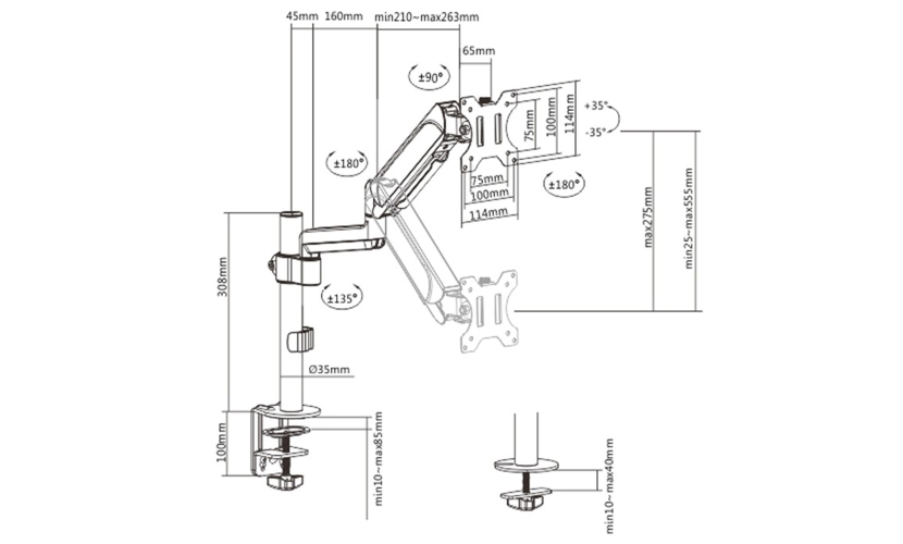 Η αποσπώμενη πλάκα VESA εξασφαλίζει εύκολη εγκατάσταση και η ενσωματωμένη θήκη διαχείρισης καλωδίων διατηρεί τον χώρο τακτοποιημένο και οργανωμένο. Η στήριξη στο γραφείο γίνεται με ισχυρό σφιγκτήρα ή δακτύλιο, ανάλογα με την ανάγκη σας, για ασφαλή και σταθερή τοποθέτηση.