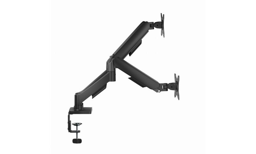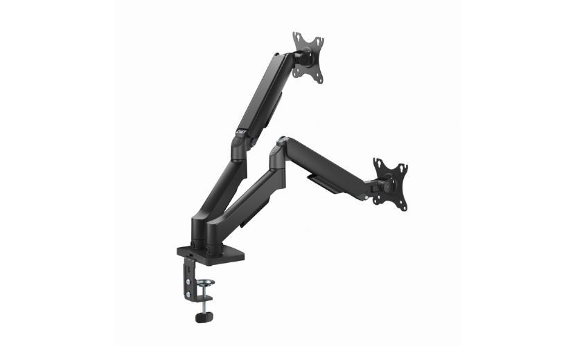 Ο διπλός βραχίονας επιτρέπει κλίση, περιστροφή, επέκταση και ανάκληση, καθώς και αλλαγή προσανατολισμού οθόνης από οριζόντια σε κατακόρυφη λειτουργία. Υποστηρίζει εύκολη εργονομική ρύθμιση για μειωμένη καταπόνηση κατά τη χρήση.