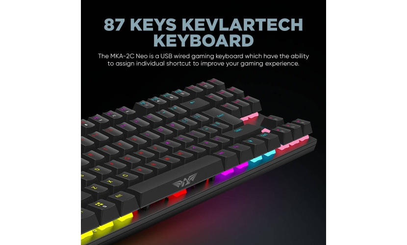 KevlarTech 87 Keys Gaming Keyboard – MKA-2C NEOΑναβαθμίστε την εμπειρία σας στο παιχνίδι και τη δουλειά με το πληκτρολόγιο KevlarTech MKA-2C NEO Σχεδιασμένο για χρήστες που απαιτούν απόδοση, ανθεκτικότητα και στυλ, αυτό το πληκτρολόγιο συνδυάζει την πιο προηγμένη τεχνολογία με έναν κομψό και σπορ σχεδιασμό για να σας προσφέρει ένα ανταγωνιστικό πλεονέκτημα σε κάθε συνεδρία.