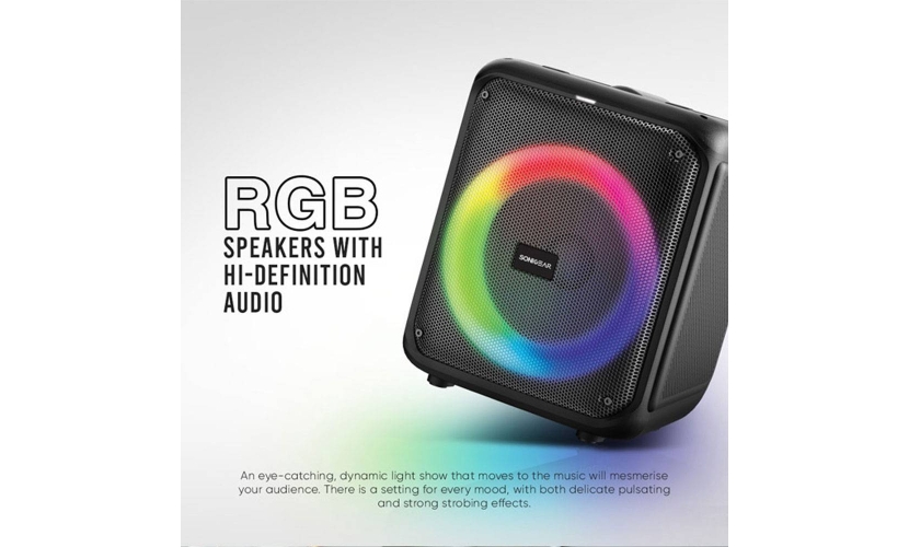 Αναβαθμίστε την ηχητική σας εμπειρία με το Sonic Gear AudioX Pro 600 – ιδανικό για κάθε περίσταση με ισχυρό ήχο και εντυπωσιακό RGB φωτισμό!