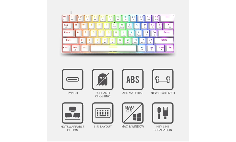 Armaggeddon MKA-1C Nex – 61 Πλήκτρα Mechanical Keyboard Λευκό (Tactile Brown Switch)