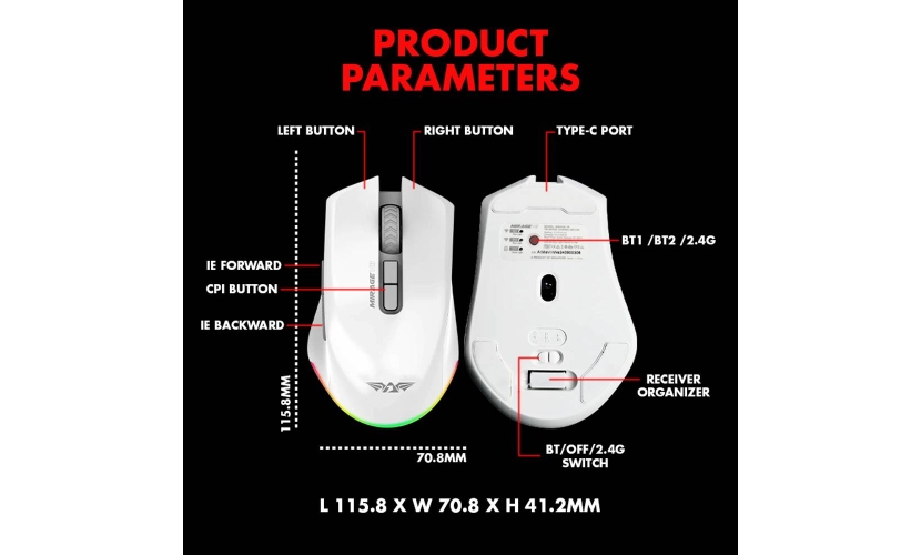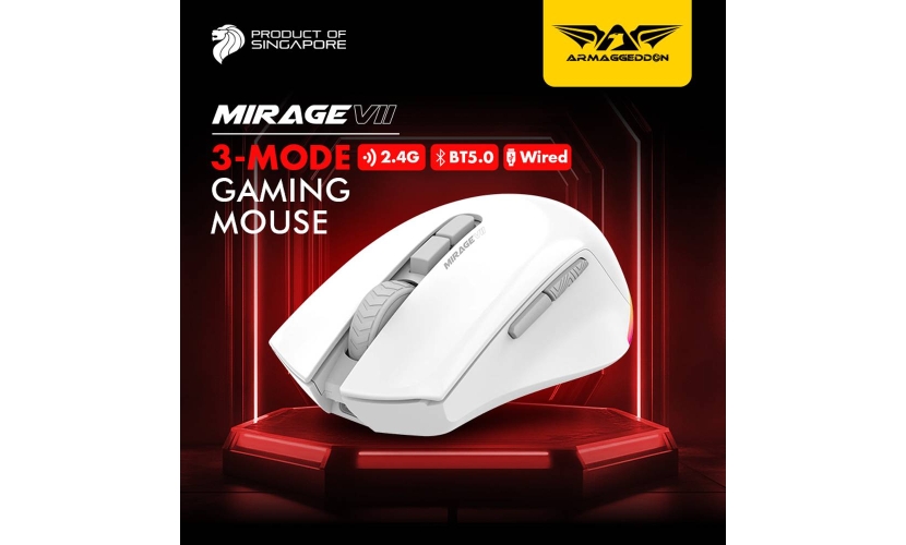 Το Armaggeddon Mirage VII είναι ένα προηγμένο gaming ποντίκι με τριπλή λειτουργία σύνδεσης – ενσύρματα, μέσω 2.4GHz ασύρματης τεχνολογίας, αλλά και Bluetooth – για απόλυτη ευελιξία σε κάθε χρήση, είτε είσαι gamer είτε εργάζεσαι επαγγελματικά.