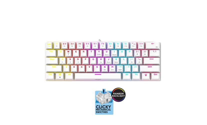 61 μηχανικά πλήκτρα με Blue Switches (Clicky – απτική & ηχητική αίσθηση)