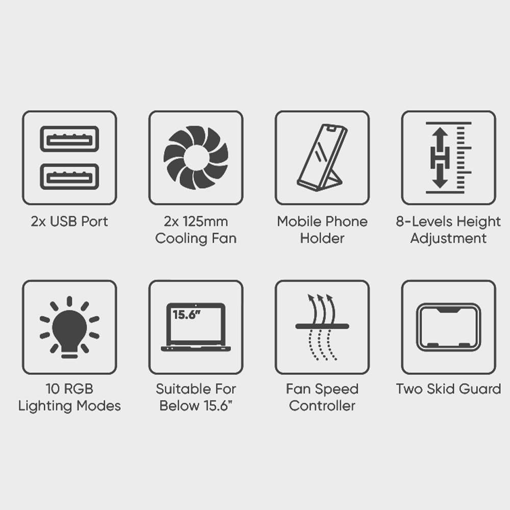 ALCATROZ VENDAVAL G2 RGB – Βάση Ψύξης για Laptop & Κινητό με 2 Ανεμιστήρες και RGB Φωτισμό
