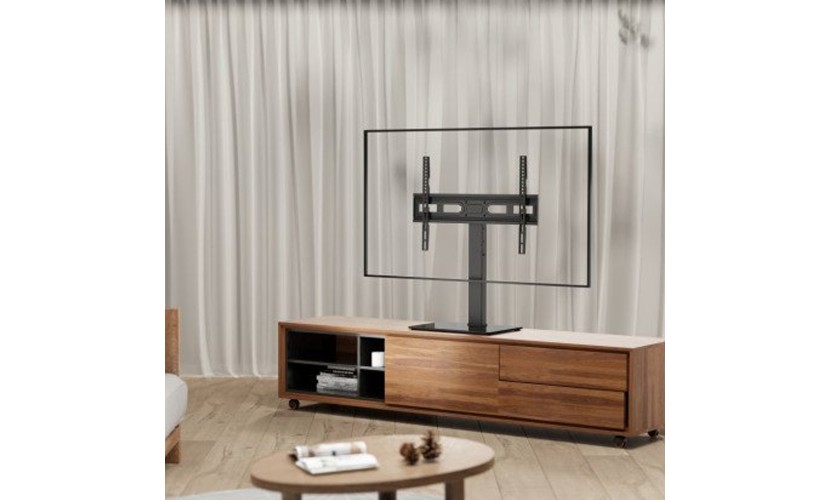 Η βάση δαπέδου SBOX FS-306 Floor Fixed Mount αποτελεί μια αξιόπιστη και κομψή λύση για την τοποθέτηση LCD/LED τηλεοράσεων χωρίς ανάγκη τοίχου. Με στιβαρή κατασκευή από ατσάλι και tempered γυαλί, προσφέρει υψηλή αντοχή και σταθερότητα, ενώ ο μοντέρνος μαύρος σχεδιασμός ταιριάζει ιδανικά σε κάθε επαγγελματικό ή οικιακό περιβάλλον. Η δυνατότητα ρύθμισης ύψους και κλίσης επιτρέπει την προσαρμογή της οθόνης για βέλτιστη θέαση, ενώ η ενσωματωμένη διαχείριση καλωδίων διατηρεί τον χώρο καθαρό και οργανωμένο. Είναι συμβατή με επίπεδες και κυρτές τηλεοράσεις, καθιστώντας την ιδανική επιλογή για παρουσιάσεις, επαγγελματικούς χώρους ή home cinema setups. Σημείωση: Κατά την εγκατάσταση, βεβαιωθείτε ότι η τηλεόραση είναι συμβατή με τα πρότυπα VESA και χρησιμοποιήστε τις κατάλληλες βίδες σύμφωνα με τον κατασκευαστή της τηλεόρασης. Βασικά Χαρακτηριστικά Τύπος: Σταθερή βάση δαπέδου για LCD/LED TV Συμβατότητα VESA: 75x75 έως 600x400 Μέγιστο βάρος: 40 kg Μέγεθος οθόνης: 37" έως 75" (94 – 190 cm) Κλίση (Tilt): -35° έως +35° Περιστροφή οθόνης: Όχι Ρύθμιση ύψους: 361 / 418 / 436 / 475 / 493 / 550 mm Ρύθμιση ύψους ραφιού: Ναι Συμβατότητα με κυρτές οθόνες: Ναι Διαχείριση καλωδίων: Ναι Χρώμα: Μαύρο Υλικά κατασκευής: Ατσάλι, Tempered Glass, Πλαστικό Φινίρισμα: Powder Coating Διαστάσεις: 420 x 280 x 755 mm