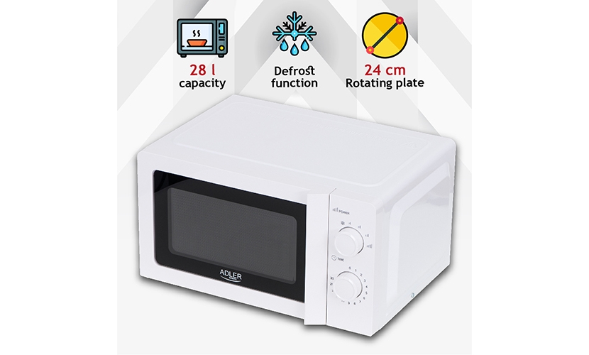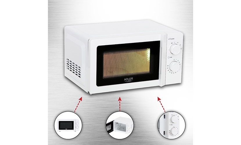 Φούρνος μικροκυμάτων γενικής χρήσης με χωρητικότητα 20 λίτρων. Αισθητικό, εύκολο στη χρήση και έτοιμο για χρήση σε κάθε κουζίνα. Χάρη στα 5 επίπεδα κυμάτων και τη λειτουργία απόψυξης, σας επιτρέπει να ετοιμάζετε νόστιμα πιάτα ή να ζεστάνετε έτοιμα προϊόντα. Η περιστρεφόμενη πλάκα εγγυάται ομοιόμορφη θέρμανση και ο χρονοδιακόπτης προστατεύει το γεύμα από το κάψιμο. Η κουζίνα χαρακτηρίζεται από εσωτερικές διαστάσεις 315 x 296 x 211 mm, ώστε να μπορείτε να τοποθετήσετε μέσα ένα πιάτο με πίτσα.