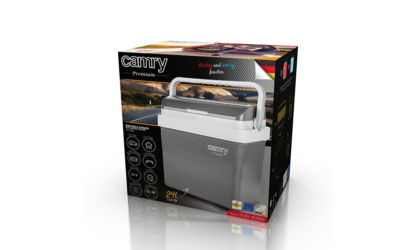 Φτιαγμένο για ταξιδιώτες που ακόμη και όταν κάνουν κατασκήνωση θέλουν να πίνουν μαζί τους μερικά δροσερά ποτά. Το φορητό ψυγείο αυτοκινήτου έχει χωρητικότητα 24l. Κλείνει με εύχρηστα μάνδαλα για σταθερό κλείδωμα του καπακιού. Χάρη στην ειδική θερμομόνωση του περιβλήματος του είναι δυνατή η διατήρηση σταθερής θερμοκρασίας. Υπάρχει μια εργονομική, πτυσσόμενη λαβή εγκατεστημένη που μπορεί να κρυφτεί στο καπάκι της θερμοσακούλας. Όταν είναι κλειστό, το ψυγείο και ο θερμαντήρας του αυτοκινήτου γίνεται μια εύχρηστη λευκή θήκη τόσο όμορφη όσο και βολική στη μεταφορά.