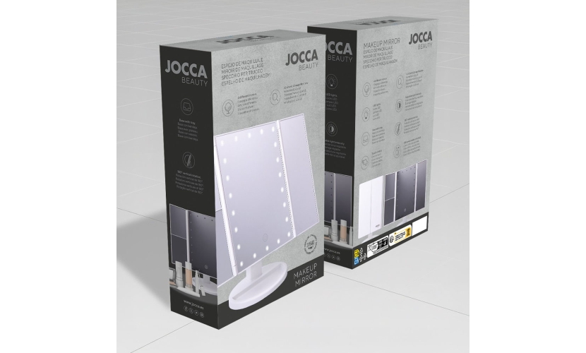 Ο Φορητός Αναδιπλούμενος Καθρέφτης Μακιγιάζ JOCCA είναι ένα πολυλειτουργικό και πρακτικό αξεσουάρ για άψογο μακιγιάζ ή ξύρισμα. Με LED φώτα και ζώνες μεγεθυντικού φακού, εξασφαλίζει τέλεια ορατότητα και ακρίβεια.