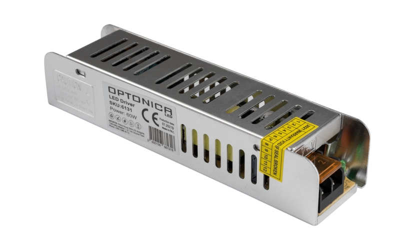 Τροφοδοτικό ισχύος 60W της Optonica, κατάλληλο για την τροφοδοσία LED καλωδιοταινίων.