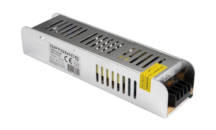 Τροφοδοτικό ισχύος 100W της Optonica, κατάλληλο για την τροφοδοσία LED καλωδιοταινίων.
