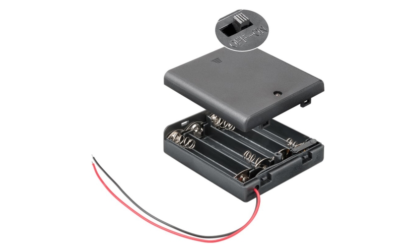 Θήκη μπαταρίας της Goobay 4 θέσεων, για μπαταρίες μεγέθους AA (Mignon), με διακόπτη On/Off. Συγκρατεί τις μπαταρίες σταθερά, παρέχοντας συνεχόμενη τροφοδοσία.