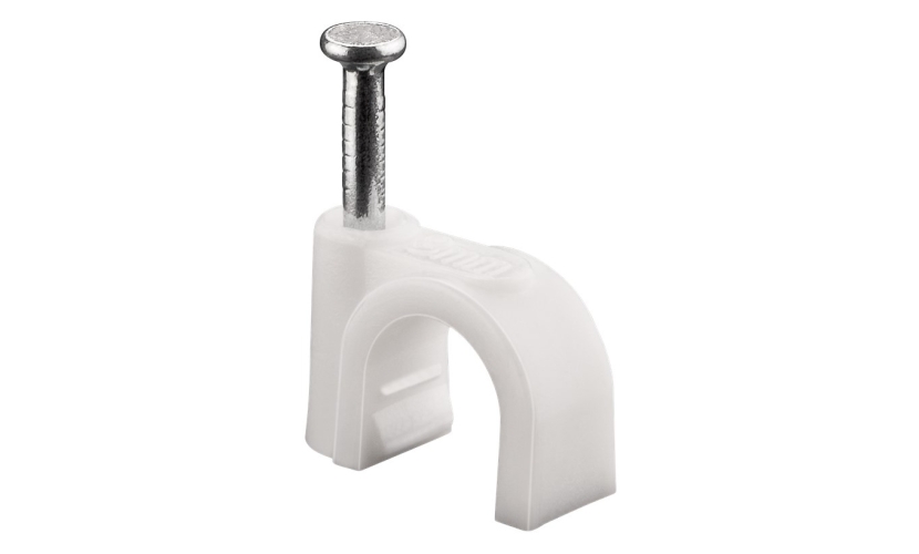 Ρόκα ιδανικά για την στήριξη καλωδίων σε τοίχους, κουφώματα θυρών και γωνίες. Είναι κατασκευασμένα από υψηλής ποιότητας πλαστικό με γαλβανισμένα ατσάλινα καρφιά. Μπορούν να χρησιμοποιηθούν τόσο σε εσωτερικούς όσο και εξωτερικούς χώρους.Η συσκευασία περιλαμβάνει 100 τεμάχια, τοποθετημένα μέσα σε βολικό πλαστικό κουτί αποθήκευσης.