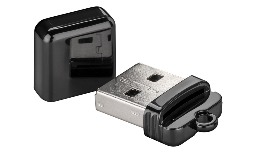 Card reader σε εξαιρετικά μικρό μέγεθος από την Goobay, με υποδοχή στην οποία μπορείτε να τοποθετήσετε μια micro SD κάρτα μνήμης. Συνδέεται απευθείας σε desktop ή laptop μέσω θύρας USB.