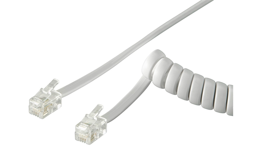-για σύνδεση μεταξύ τηλεφώνου και ακουστικού-ευέλικτο, χάρη στο επίπεδο, σπειροειδές καλώδιο-4-pole assigned 4p4c modular plug (plug width: ~7.7mm)-no defined RJ standard, often also called RJ9, RJ10 or RJ22
