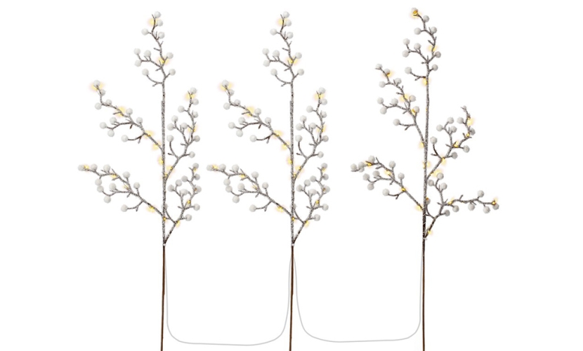 Σετ 3 φωτιστικών δέντρων με 75 LEDs (25 LED ανά δέντρο) που συνδέονται με ένα διαφανές καλώδιο συνολικού μήκους 2 μέτρα, ιδανικά για εσωτερικούς αλλά και εξωτερικούς χώρους χάρη στον βαθμό προστασίας IP44.Η θερμοκρασία χρώματος είναι 3000K (θερμό λευκό) ενώ διαθέτουν και λειτουργία χρονοδιακόπτη.Λειτουργούν με 3x AA μπαταρίες οι οποίες δεν συμπεριλαμβάνονται στην συσκευασία.