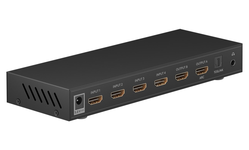 -συνδέει 4x συσκευές με 2x οθόνες μέσω HDMI-υποστηρίζει ανάλυση βίντεο έως 4K στα 30Hz-υποστηρίζει μετάδοση ήχου μέσω S/PDIF ή 3.5mm-εναλλαγή μέσω ασύρματου τηλεχειριστήριου-plug & play-ανθεκτικό μεταλλικό περίβλημα