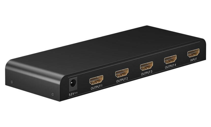 Το HDMI splitter της Goobay σας επιτρέπει την σύνδεση 1x συσκευής εισόδου όπως PC σε 4x συσκευών εξόδου όπως οθόνες.