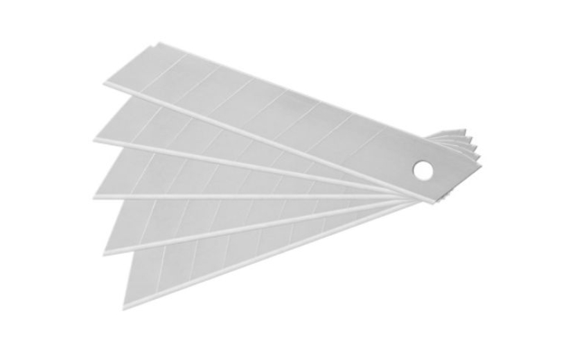 Ανταλλακτικές λεπίδες για κοπίδι, 18mm σε συσκευασία των 10 τεμαχίων.Η κάθε λεπίδα χωρίζεται σε 7 μέρη, ώστε, αφαιρώντας το φθαρμένο άκρο, να έχετε νέα λεπίδα ξανά.