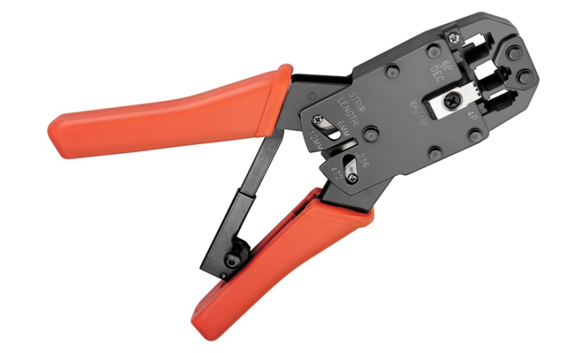 Πρέσα ακροδεκτών δικτύου από την Goobay, κατάλληλη για πτύχωση, απογύμνωση και κοπή βυσμάτων 4P, 6P, 8P τύπου RJ10, RJ11, RJ12 και RJ45.