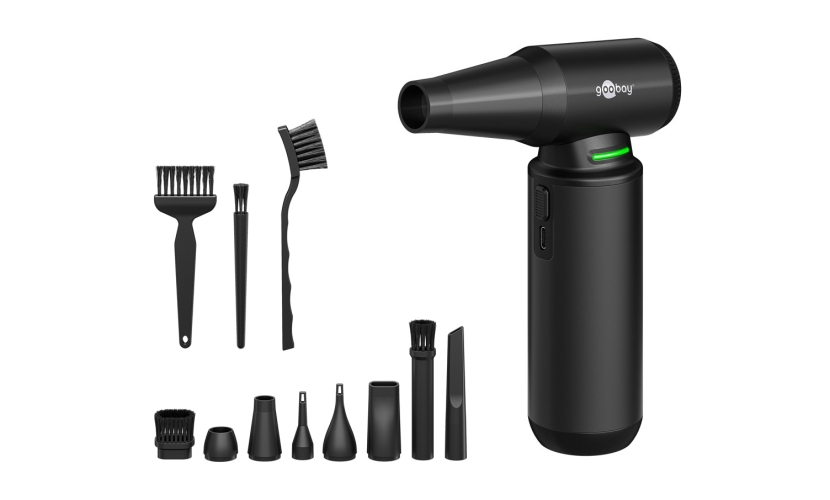 Ηλεκτρικό air duster της Goobay, κατάλληλο για την απομάκρυνση της σκόνης από αξεσουάρ και οικιακά αντικείμενα όπως πληκτρολόγια, PC cases, κλιματιστικά, ηλεκτρονικές συσκευές κ.α.Διαθέτει 3 επίπεδα λειτουργίας και συνοδεύεται από διάφορα ακροφύσια κατάλληλα για διαφορετικές εφαρμογές.Επιπλέον, μπορεί να χρησιμοποιηθεί για το φούσκωμα φουσκωτών στρωμάτων αλλά και για την απομάκρυνση σκόνης και άμμου από το εσωτερικό οχημάτων.Τροφοδοτείται από επαναφορτιζόμενη μπαταρία χωρητικότητας 6000mAh, η οποία προσφέρει αυτονομία για έως και 110 λεπτά.