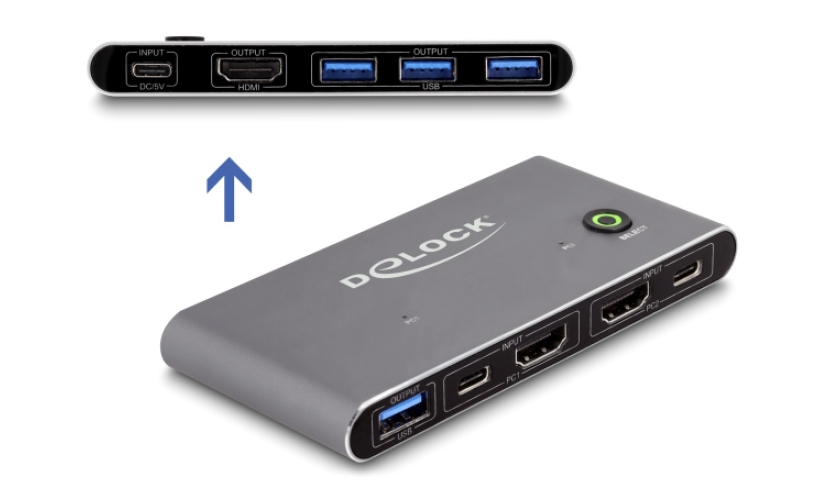 DELOCK HDMI KVM switch 18647 με 4x θύρες USB 5Gbps, 8K/30Hz, γκρι