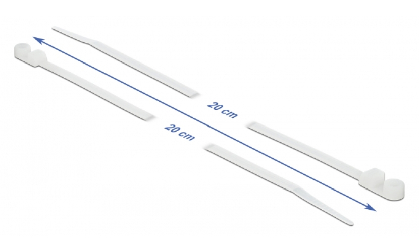 DELOCK Δεματικά καλωδίων 18945 με οπή στερέωσης, 200x4.8mm, λευκά, 10τμχ