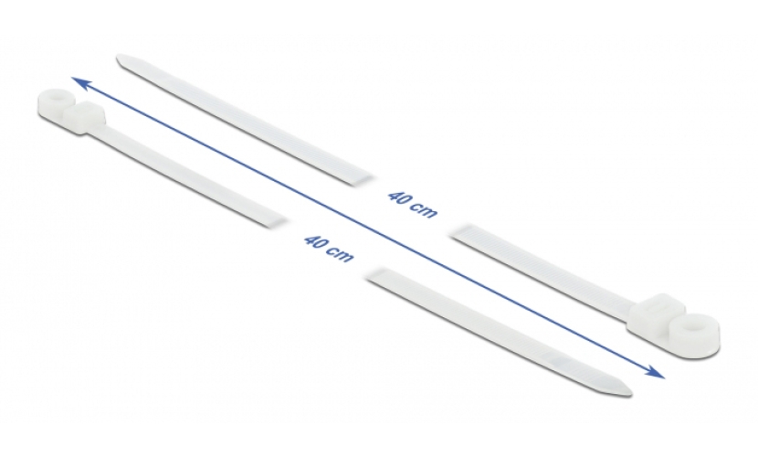 DELOCK Δεματικά καλωδίων 18948 με οπή στερέωσης, 400x7.6mm, λευκά, 10τμχ