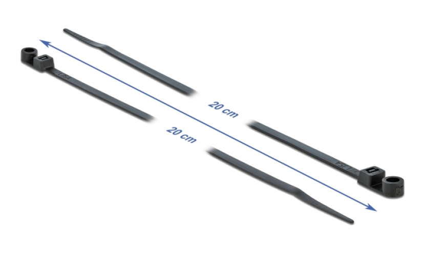 DELOCK Δεματικά καλωδίων 18950 με οπή στερέωσης, 200x4.8mm, μαύρα, 10τμχ