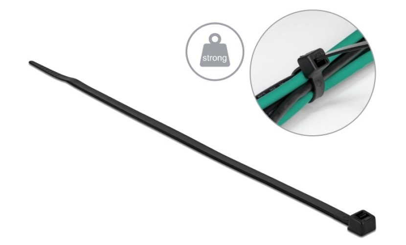 Δεματικά καλωδίων της Delock με αυτόματο μηχανισμό κλεισίματος, ιδιαίτερα υψηλής αντοχής με αντοχή σε εφελκυσμό έως 34 kg.