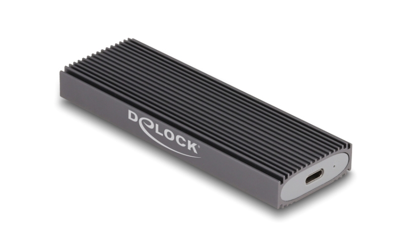 Αυτή η θήκη της Delock μπορεί να χρησιμοποιηθεί για την σύνδεση ενός M.2 PCIe NVMe SSD ή SATA M.2 SSD με έναν επιτραπέζιο ή φορητό υπολογιστή μέσω θύρας USB-C.Η εγκατάσταση του M.2 SSD γίνεται πολύ εύκολα χωρίς να απαιτούνται εργαλεία. Το εσωτερικό τμήμα μπορεί να τραβηχτεί προς τα έξω με το πάτημα ενός κουμπιού για την εύκολη εισαγωγή του M.2 SSD