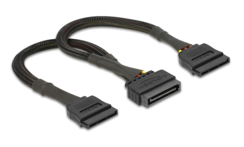 DELOCK καλώδιο SATA 15pin σε 2x SATA 15pin 60135, 0.25m, μαύρο