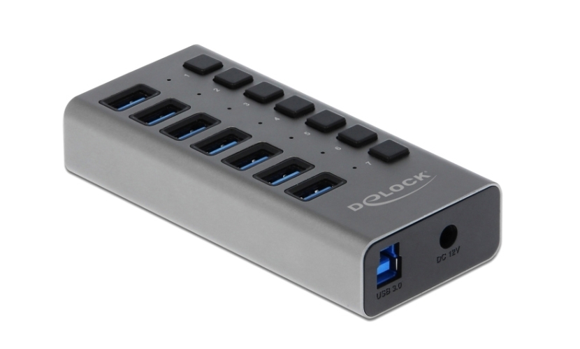 Το Hub USB 3.0 της Delock μπορεί να συνδεθεί με υπολογιστή μέσω καλωδίου USB επεκτείνοντας τον με 7 θύρες USB. Οι συνδεδεμένες συσκευές όπως τα smartphone μπορούν να φορτιστούν ή να μεταφέρουν δεδομένα στα 5 Gbps. Κάθε θύρα μπορεί να ενεργοποιηθεί ή να απενεργοποιηθεί ξεχωριστά χρησιμοποιώντας τους διακόπτες. Είναι ένα κομψό προϊόν υψηλής ποιότητας το οποίο είναι κατασκευασμένο από αλουμίνιο. Το design και η αίσθηση του μεταλλικού υλικού της κατασκευής δίνει ιδιαίτερο τόνο στο γραφείο σας, ταιριάζοντας αρμονικά με τις υπόλοιπες συσκευές σας.