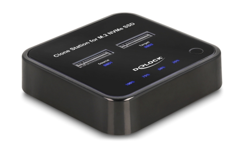 Αυτό το docking station της Delock επιτρέπει την σύνδεση έως δύο M.2 PCIe NVMe SSD σε έναν υπολογιστή μέσω θύρας USB-C (συμπεριλαμβάνεται καλώδιο).Υποστηρίζει λειτουργία κλωνοποίησης που επιτρέπει την αντιγραφή περιεχομένου από ένα SSD σε άλλο χωρίς τη χρήση υπολογιστή.Η τοποθέτηση του SSD στις υποδοχές του docking station γίνεται εύκολα χωρίς την χρήση εργαλείων.