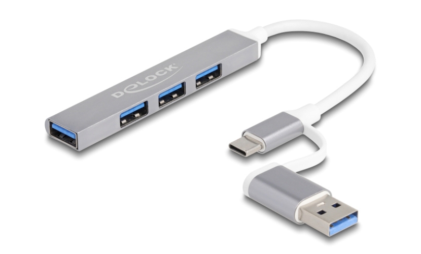 DELOCK USB hub 64214, 4x θυρών, 5Gbps, USB & USB-C σύνδεση, γκρι